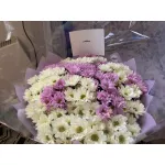Букет из двадцати пяти разноцветных хризантем — это прекрасный способ выразить восхищение и преданность любимой женщине. Изящное сочетание белых и фиолетовых соцветий смотрится элегантно и торжественно. Эти удивительные цветы способны очень долго сохранять свежесть в любое время года. Дарите радость близким людям и наслаждайтесь их восторженной реакцией на проявление любви и нежности.