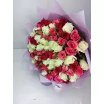Очень красивый букет. Цветы все были свежие, за день до отправили фотографию. Цветы приятно пахнут.